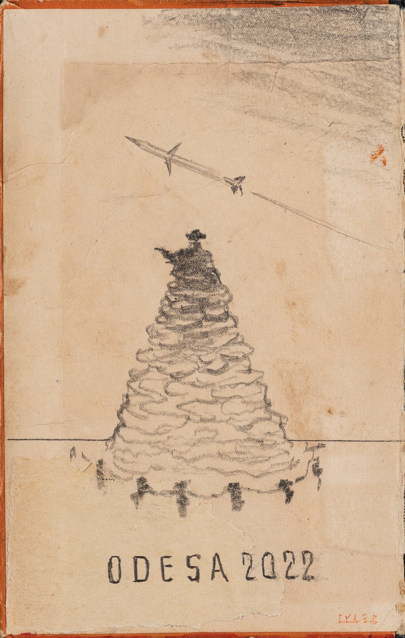 Before the Russian invasion, the Odesa-born artist achieved considerable success at home and abroad with his haunting, dreamlike paintings. The invasion led to a new turn in Gusev’s art, and a fairy tale figured in a drawing he published on Facebook on the first day of the invasion -- the first work in what he calls “Series 3 World War 2022.” In one of the series, Lenin’s tomb is walking on chicken legs dripping blood with “the Russians are coming” beneath the image: a mummified past approaching, reminiscent of Slavic folklore villain Baba Yaga. Some of Gusev’s works have been displayed at Odesa’s central Book Market, which has become a popular meeting spot -- a venue for jazz concerts and theater performances -- as the city seeks to come back to life after the initial shock caused by the war, despite continued attacks.